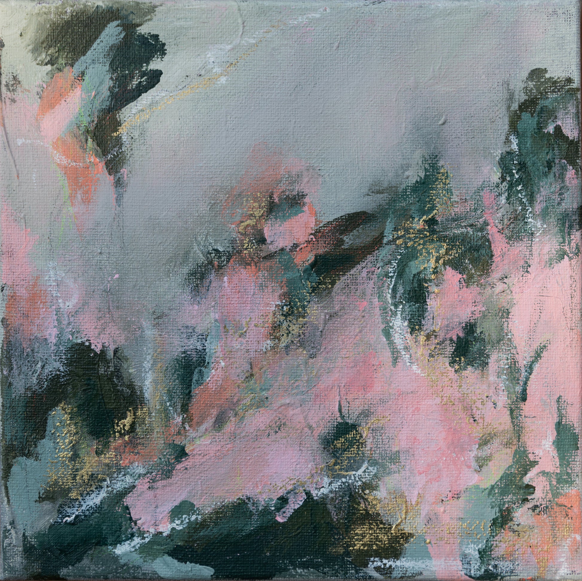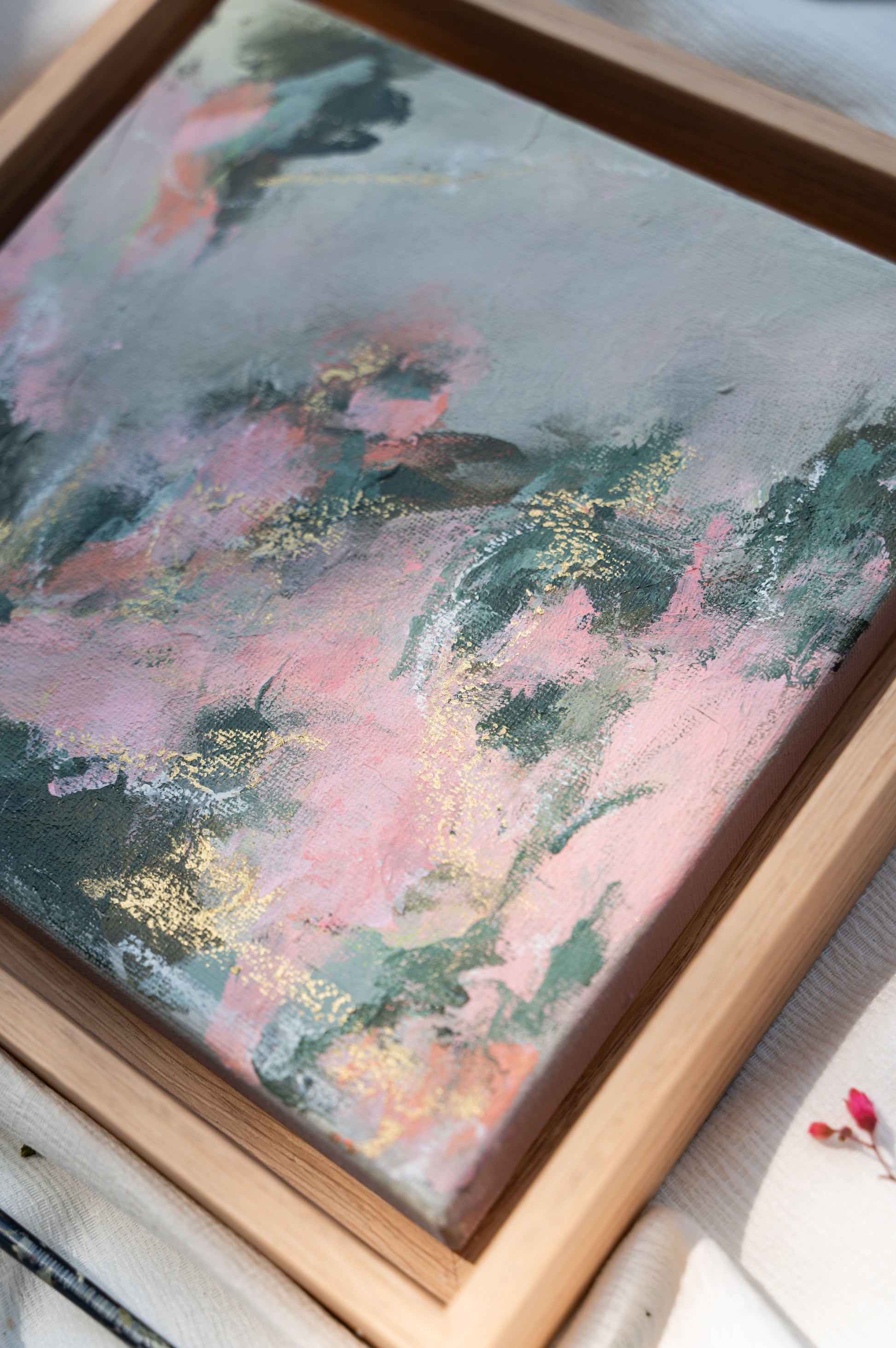At the center of this piece is that softness, that gentleness. Around it: darker shades, holding the weight of what’s hard. And running through it all, little glimmers of gold — because even in the heaviness, there are golden moments. And they are so valuable.