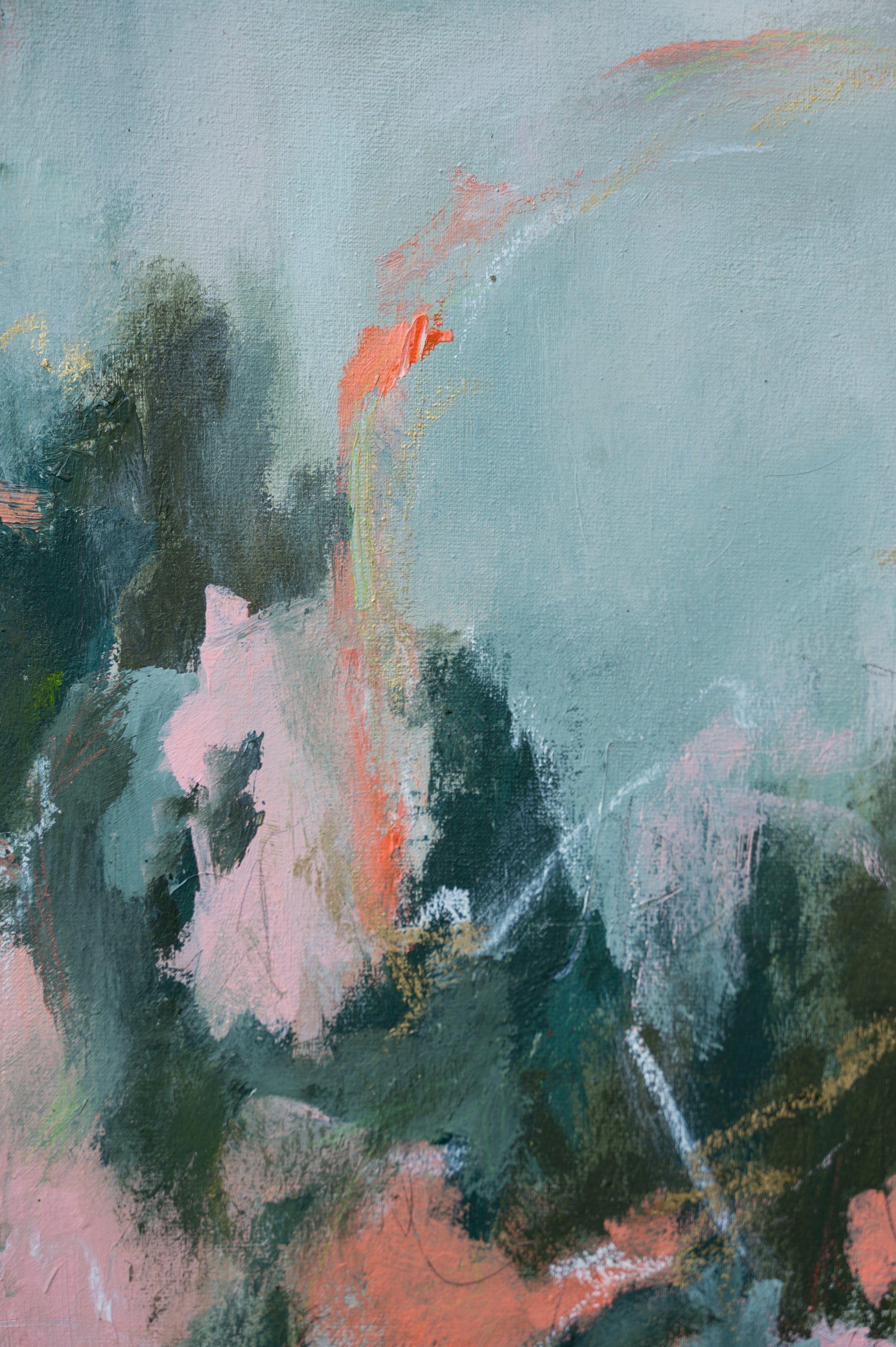 The painting has been built, layer by layer, mark by mark, until a beautifully, balanced work of art emerged – deep and complex.