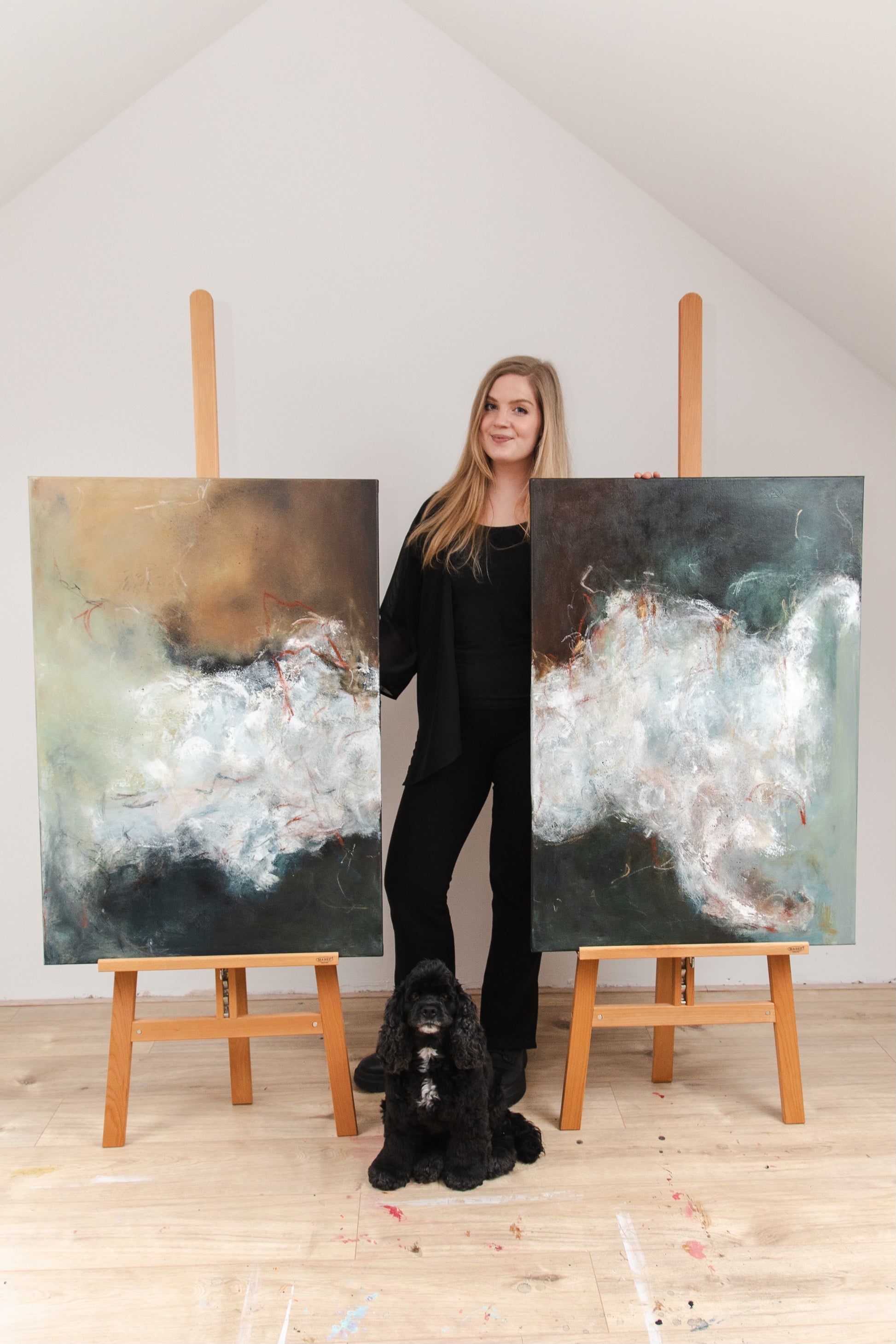 Delve into the depths of human connection with this captivating abstract diptych print, 'THE INVISIBLE THREADS THAT TIE US TOGETHER', created as a visual interpretation of Geke Maes' poem, 'Samen' ('Together')